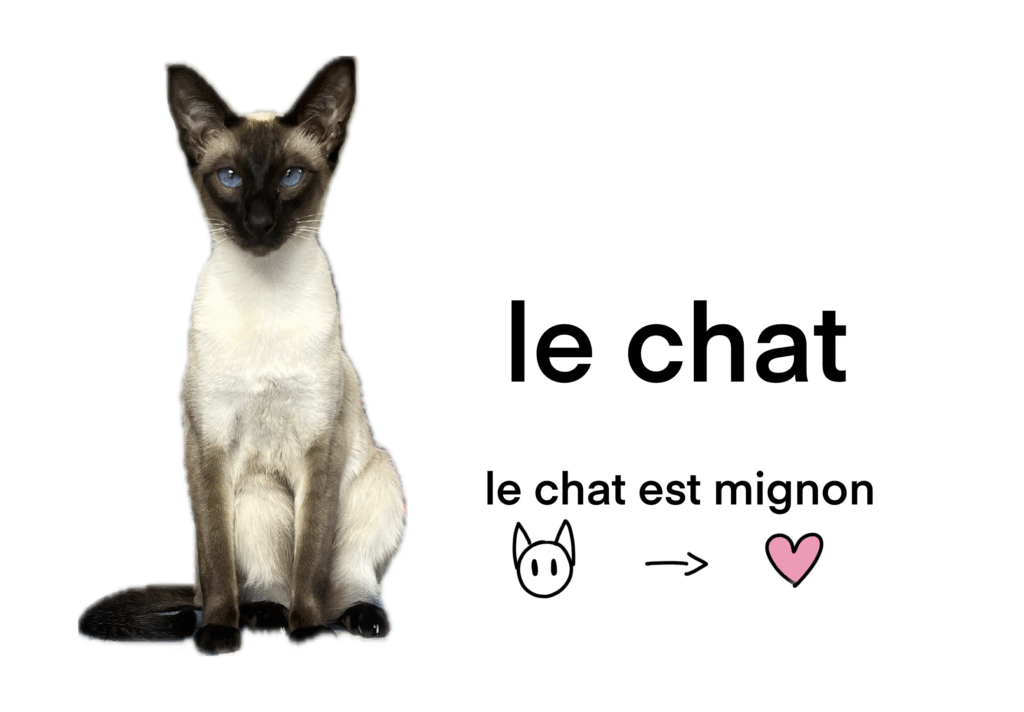 Instead of associating a word with its translation, associate it with an image or gesture. This can be tricky with words like “the” and “is”. For those, just try to see them within the context of a full sentence rather than on their own.